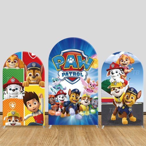 JY635-2 Paw Patrol Full Team Flame Logo Arch Backdrop Cover, Elastic Fabric Arch for Boys Birthday, Kids Party Decoration