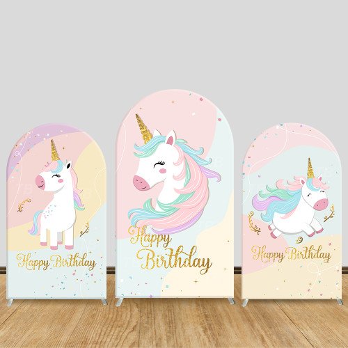 JY706 Unicorn Gold Foil Happy Birthday Arch Backdrop Cover, Elastic Fabric Arch for Girls Birthday, Sweet Party Decoration