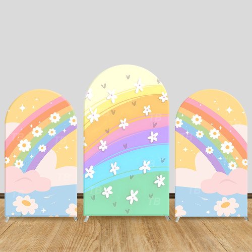 JY714 Rainbow Flower Cute Arch Backdrop Cover, Elastic Fabric Arch for Baby Shower, Girls Sweet Birthday Party