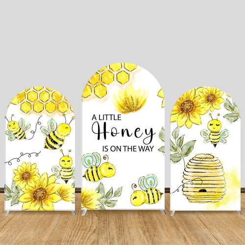 JY724 A Little Honey Bee Arch Backdrop Cover, Watercolor Elastic Fabric Arch for Baby Shower, Bee Themed Party