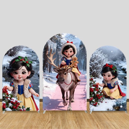 JY943 Snow White Reindeer Gingerbread Man Arch Backdrop Cover, Elastic Fabric Arch for Kids Birthday, Winter Adventure Party