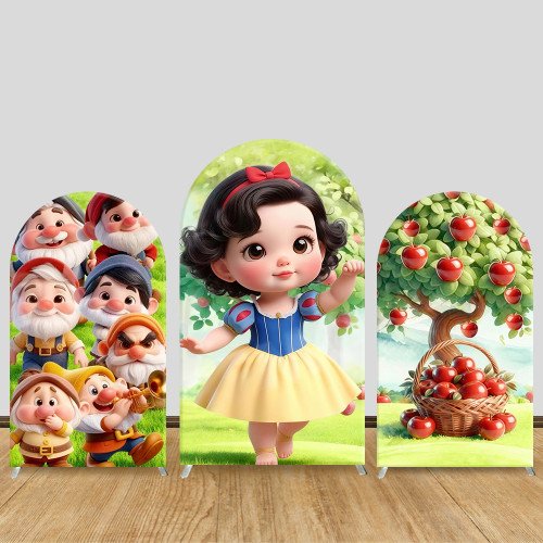 JY1035 Snow White & Seven Dwarfs Arch Backdrop Cover, Elastic Fabric Background for Kids Birthday & Fairy Tale Party