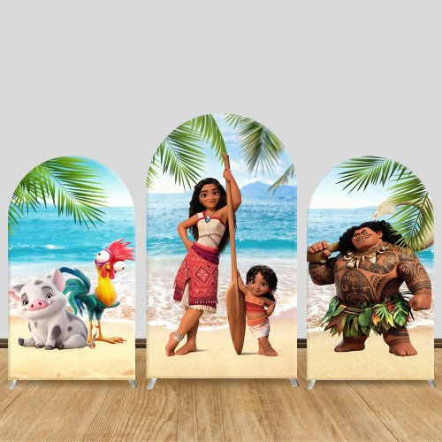 JY1037 Moana Tropical Beach Arch Backdrop Cover, Elastic Fabric Background for Kids Birthday & Hawaiian Party
