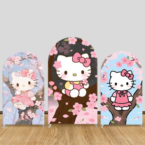 JY1156 Hello Kitty Cherry Blossom Arch Backdrop Cover, Elastic Fabric Background for Spring & Kawaii Themed Party