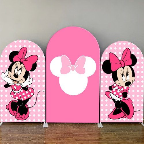 JY12 Pink Polka Dot Minnie Arch Backdrop Cover Elastic Fabric Bow Themed Party Decoration for Girls Birthday Baby Shower
