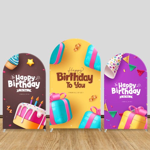 JY70 Gift Box Happy Birthday Arch Backdrop Cover Elastic Fabric Confetti Themed Kids Birthday Party Decoration