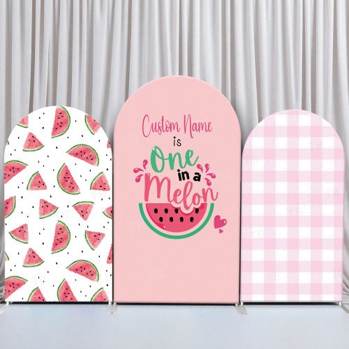 JY85 Watermelon One in a Melon Arch Backdrop Cover Elastic Fabric Pink Gingham 1st Birthday Decoration