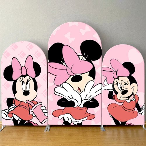 JY194 Pink Minnie Mouse Bow Arch Backdrop Cover Elastic Fabric Girls Birthday Baby Shower Decoration