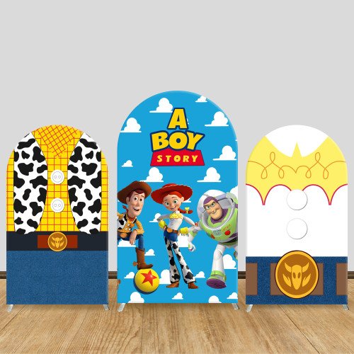 JY321 Toy Story A Boy Story Woody Buzz Jessie Arch Backdrop Cover Elastic Fabric Kids Birthday Baby Shower Decoration