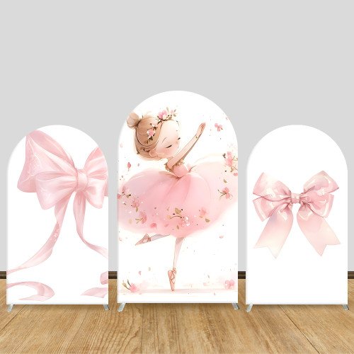 JY374 Pink Ballerina Girl Bow Arch Backdrop Cover Elastic Fabric Girls Birthday Party Decoration