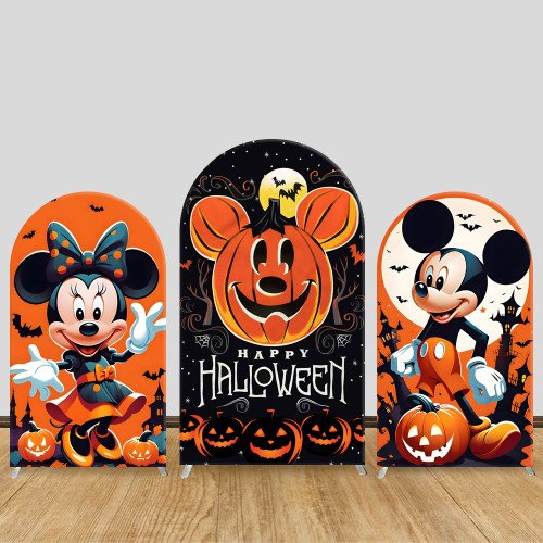 JY385 Minnie Mickey Pumpkin Happy Halloween Arch Backdrop Cover Elastic Fabric Cartoon Kids Halloween Party Decoration
