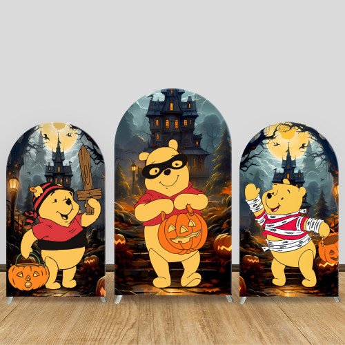 JY390 Halloween Winnie the Pooh Arch Backdrop Cover, Cartoon Elastic Fabric Backdrop for Kids Halloween Party Decor