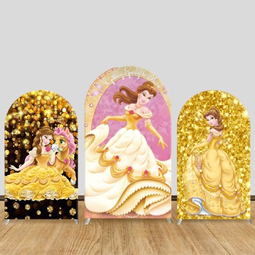 JY210 Belle Princess Gold Glitter Getting Ready to Shine Arch Backdrop Cover Elastic Fabric Girls Birthday Party Decoration
