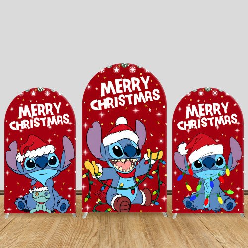JY411 Merry Christmas Stitch Arch Backdrop Cover, Elastic Fabric Arch Backdrop Stand Cover for Holiday Celebration, Cartoon Character Light String Photo Booth Backdrop for Wedding Party