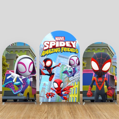 JY249 Marvel Spidey and His Amazing Friends Arch Backdrop Cover, Cute Elastic Fabric Arch Backdrop for Kids Birthday Party, Wedding, Photo Booth Decor