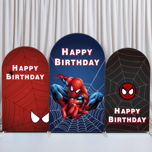 JY264 Spider-Man Happy Birthday Web Arch Backdrop Cover, Elastic Fabric Arch Backdrop for Kids Boys Superhero Birthday Party, Photo Booth Decor