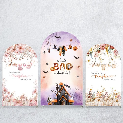 JY417 Halloween Baby Shower Arch Backdrop Cover Set, Elastic Fabric Arch Stand Cover for 'A Little Boo is Almost Due' Party, Pink Floral Pumpkin Photo Booth Backdrop for Event Decor