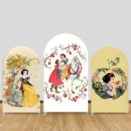 JY633 Snow White Vintage Fairy Tale Arch Backdrop Cover, Elastic Fabric Arch for Girls Birthday, Princess Party Decoration