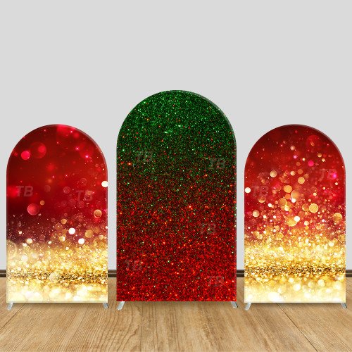 JY642 Christmas Red Green Gold Glitter Gradient Arch Backdrop Cover, Elastic Fabric Arch for Christmas Party, Holiday Decoration