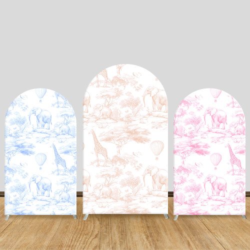 JY446 Jungle Animal Toile De Jouy Arch Backdrop Cover, Elastic Fabric Arch Backdrop Stand Cover for Baby Shower Wedding, Giraffe Elephant Hot Air Balloon Photo Backdrop for Party Decor