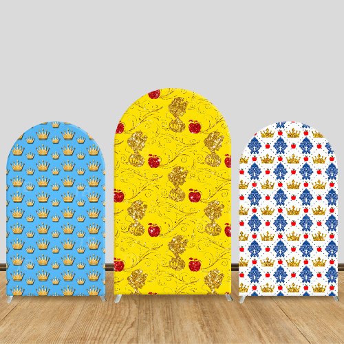 JY657 Snow White Yellow Blue Crown Arch Backdrop Cover, Glitter Fabric Arch for Girls Fairy Tale Birthday, Princess Party