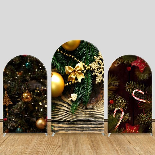 JY697 Christmas Pine Branch Gold Ornament Arch Backdrop Cover, Elastic Fabric Arch for Christmas Party, Holiday Decoration