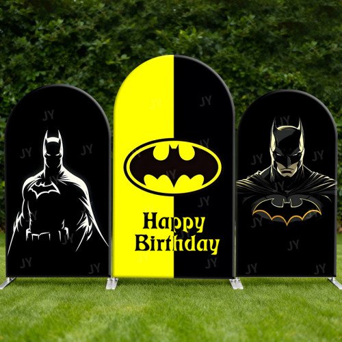 JY731 Batman Yellow Black Happy Birthday Arch Backdrop Cover, Elastic Fabric Arch for Boys Birthday, Superhero Party Decoration