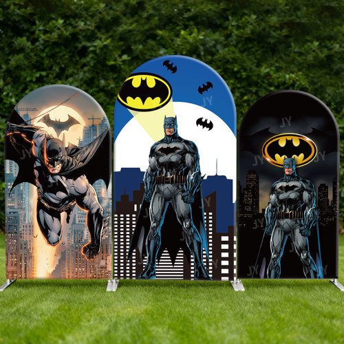 JY732 Batman Gotham City Night Arch Backdrop Cover, Elastic Fabric Arch for Boys Birthday, Superhero Themed Party