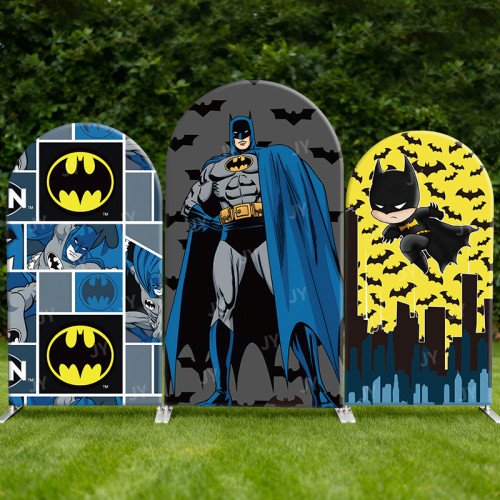 JY733 Batman Collage Chibi City Arch Backdrop Cover, Elastic Fabric Arch for Boys Birthday, Superhero Party Decoration