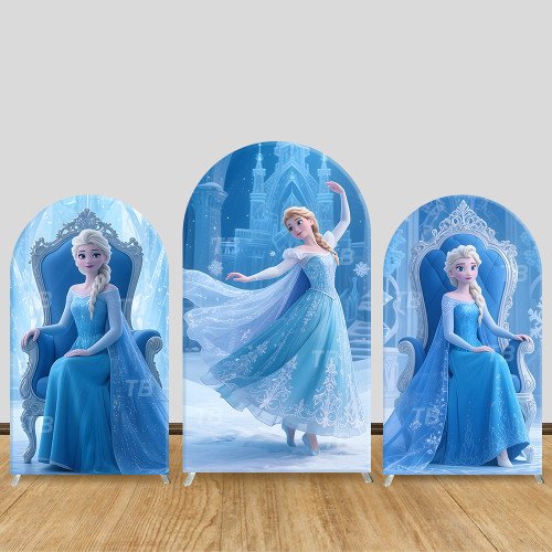 JY745 Frozen Elsa Throne Dance Arch Backdrop Cover, Elastic Fabric Arch for Girls Birthday, Disney Princess Party Decoration
