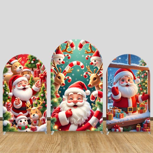 JY843 Christmas Santa Claus Reindeer Arch Backdrop Cover, Elastic Fabric Arch for Christmas Party, Winter Holiday Decoration