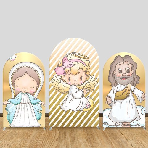 JY907 Cartoon Angel Jesus Arch Backdrop Cover, Elastic Fabric Arch for Baptism Party, Religious Celebration Decoration