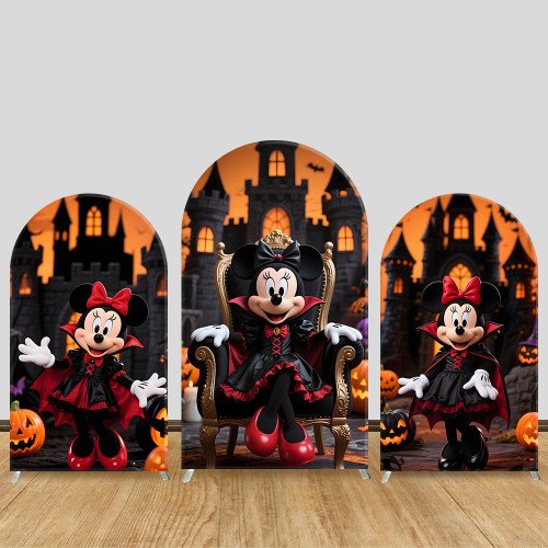 JY915 Minnie Mouse Halloween Vampire Castle Arch Backdrop Cover, Elastic Fabric Arch for Kids Halloween, Gothic Party Decoration