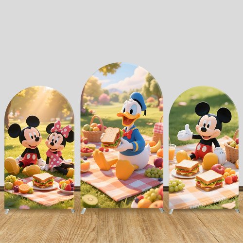 JY929 Mickey Minnie Donald Duck Outdoor Picnic Arch Backdrop Cover, Elastic Fabric Arch for Kids Birthday, Family Party Decoration