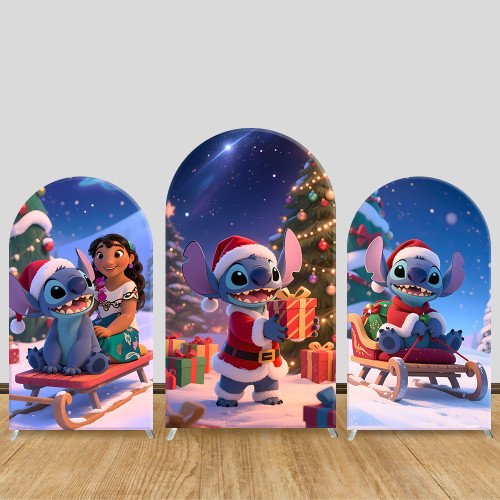 JY932 Lilo & Stitch Christmas Sleigh Arch Backdrop Cover, Elastic Fabric Arch for Christmas Party, Winter Holiday Decoration