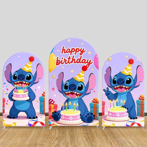 JY939 Lilo & Stitch Happy Birthday Arch Backdrop Cover, Elastic Fabric Arch for Kids Birthday, Colorful Party Decoration