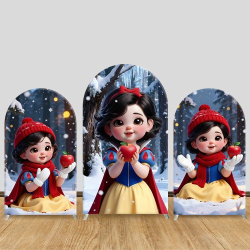 JY944 Snow White Red Hat Apple Arch Backdrop Cover, Elastic Fabric Arch for Girls Birthday, Magical Winter Party Decoration