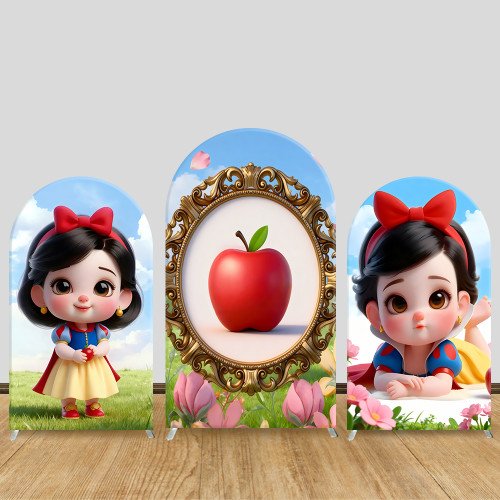 JY947 Snow White Magic Apple Arch Backdrop Cover, Elastic Fabric Arch for Girls Birthday, Fairy Tale Party Decoration