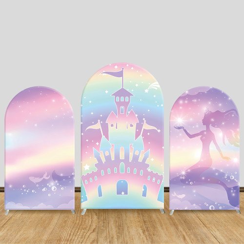 JY978 Rainbow Mermaid Castle Arch Backdrop Cover, Elastic Fabric Arch for Girls Birthday, Magical Party Decoration