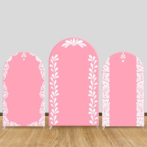 JY1010 Pink Minimalist Floral Arch Backdrop Cover, Elastic Fabric Arch for Wedding & Baptism, Elegant Party Decoration