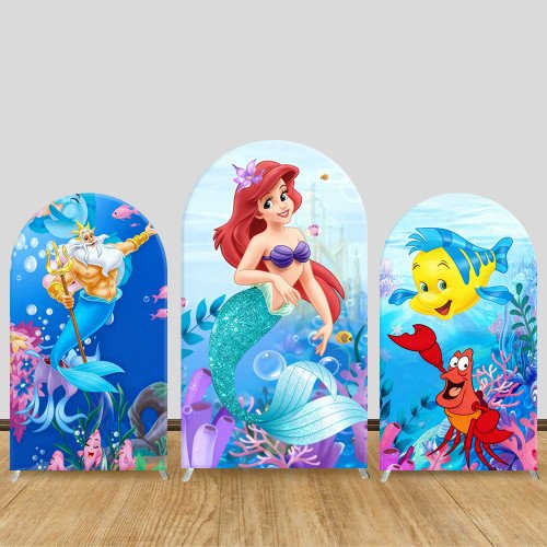 JY1036 The Little Mermaid Ariel Underwater Arch Backdrop Cover, Elastic Fabric Background for Girls Birthday & Ocean Party