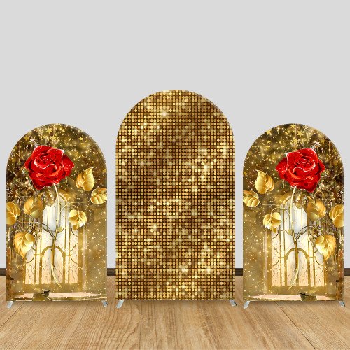 JY1045 Golden Rose Disco Arch Backdrop Cover, Elastic Fabric Background for Wedding & Elegant Party