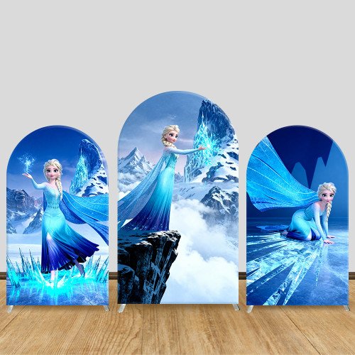 JY1104 Frozen Elsa Snow Mountain Magic Arch Backdrop Cover, Elastic Fabric Background for Girls Birthday & Ice Party