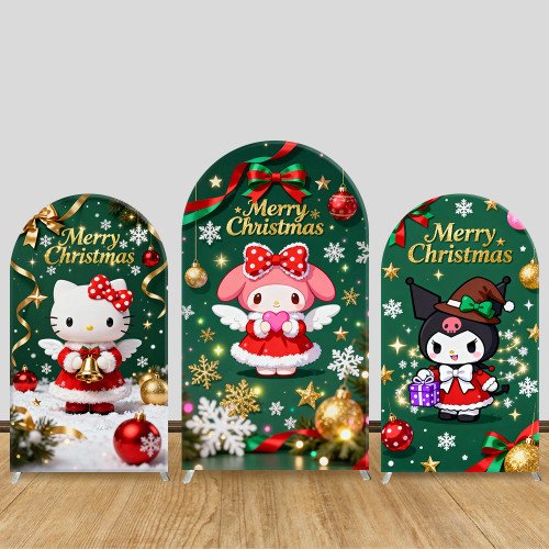 JY1125 Hello Kitty, My Melody & Kuromi Christmas Arch Backdrop Cover, Elastic Fabric Background for Holiday & Festive Party