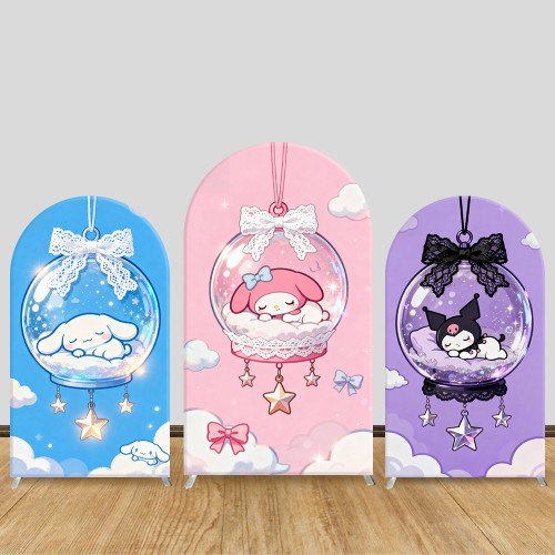 JY1128 Sanrio Characters Crystal Ball Arch Backdrop Cover, Elastic Fabric Background for Girls Birthday & Magical Party