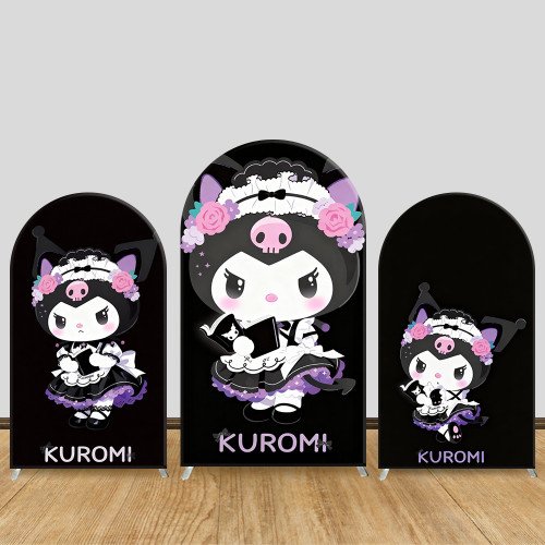 JY1135 Kuromi Maid Style Arch Backdrop Cover, Elastic Fabric Background for Girls Birthday & Cute Gothic Party