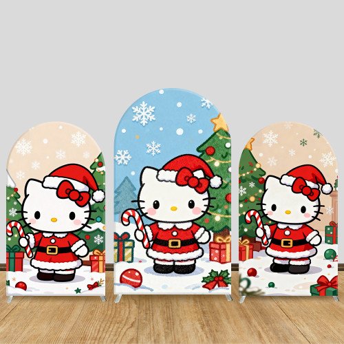 JY1148 Hello Kitty Christmas Candy Cane Arch Backdrop Cover, Elastic Fabric Background for Holiday & Festive Party