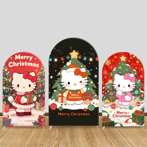 JY1179 Hello Kitty Christmas Gift Arch Backdrop Cover, Elastic Fabric Background for Holiday & Festive Party