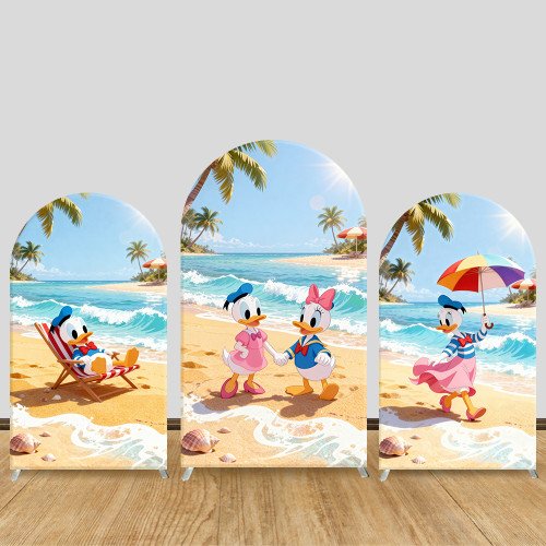 JY1208 Donald & Daisy Duck Beach Couple Arch Backdrop Cover, Elastic Fabric Background for Summer & Themed Party