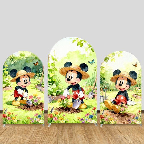 JY1216 Gardener Mickey Mouse Arch Backdrop Cover, Elastic Fabric Background for Spring & Garden Themed Party